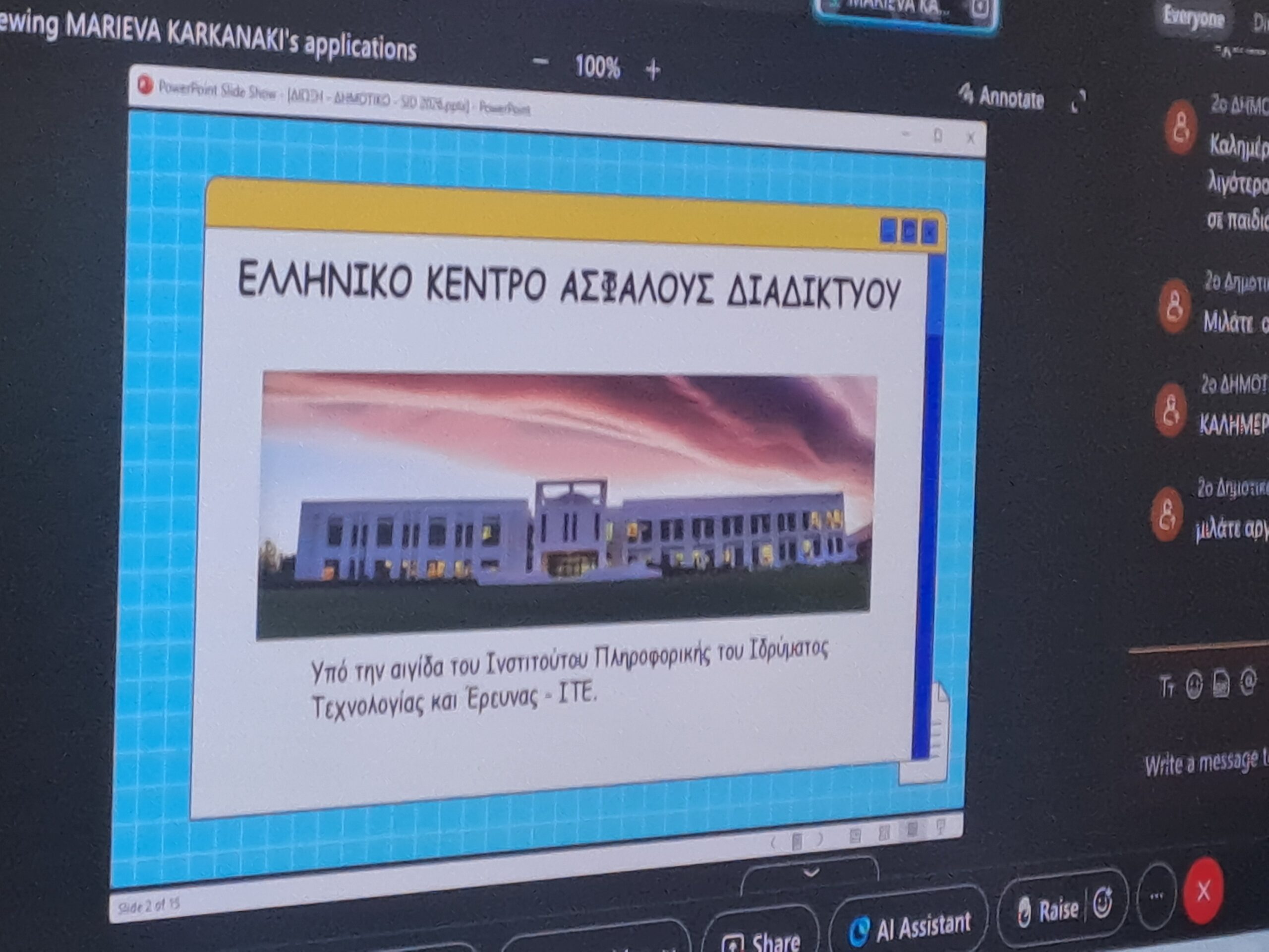 Την Παρασκευή 6 Φεβρουαρίου 2026, παρακολουθήσαμε διαδικτυακές ενημερώσεις μαθητών από τη Διεύθυνση  Δίωξης Κυβερνοεγκλήματος της Ελληνικής Αστυνομίας και του Πανελλήνιου Σχολικού Δικτύου του Υπουργείου Παιδείας, Θρησκευμάτων και Αθλητισμού
