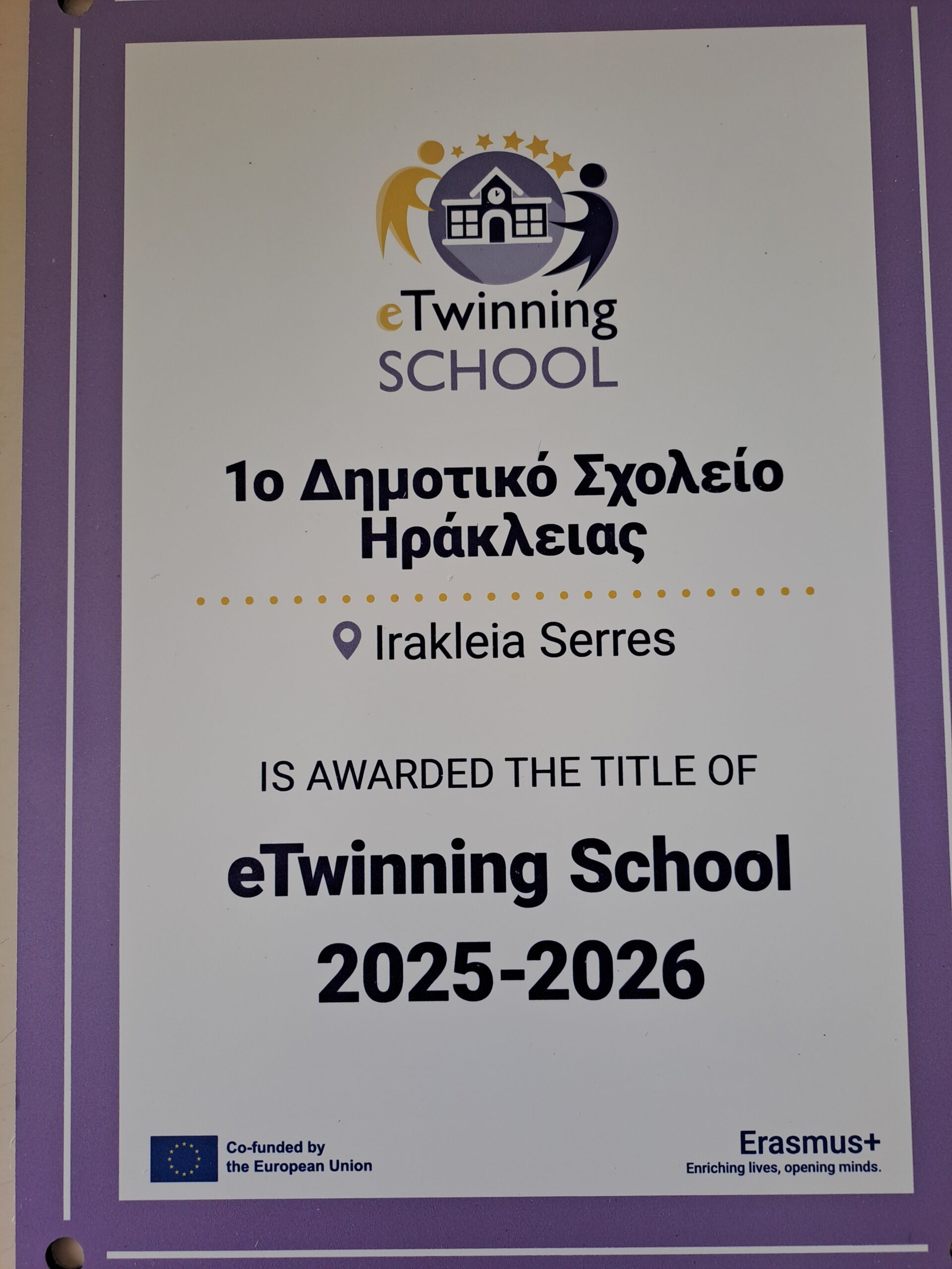 Το 1ο Δημοτικό Σχολείο Ηράκλειας ήταν ένα από τα 250 περίπου σχολεία πανελλαδικά που βραβεύτηκαν με την Ετικέτα Σχολείου eTwinning για τη χρονική περίοδο 2025-26!