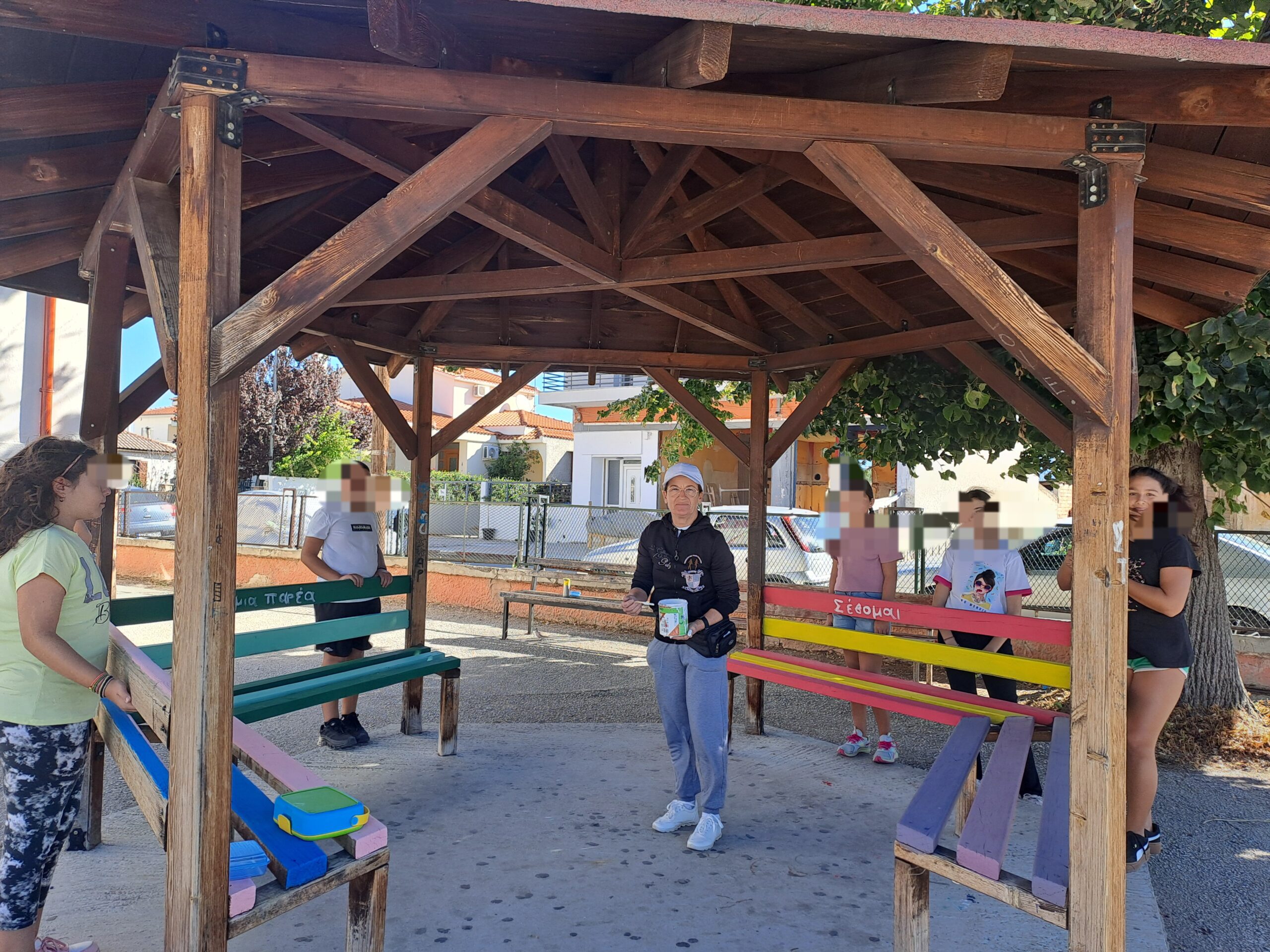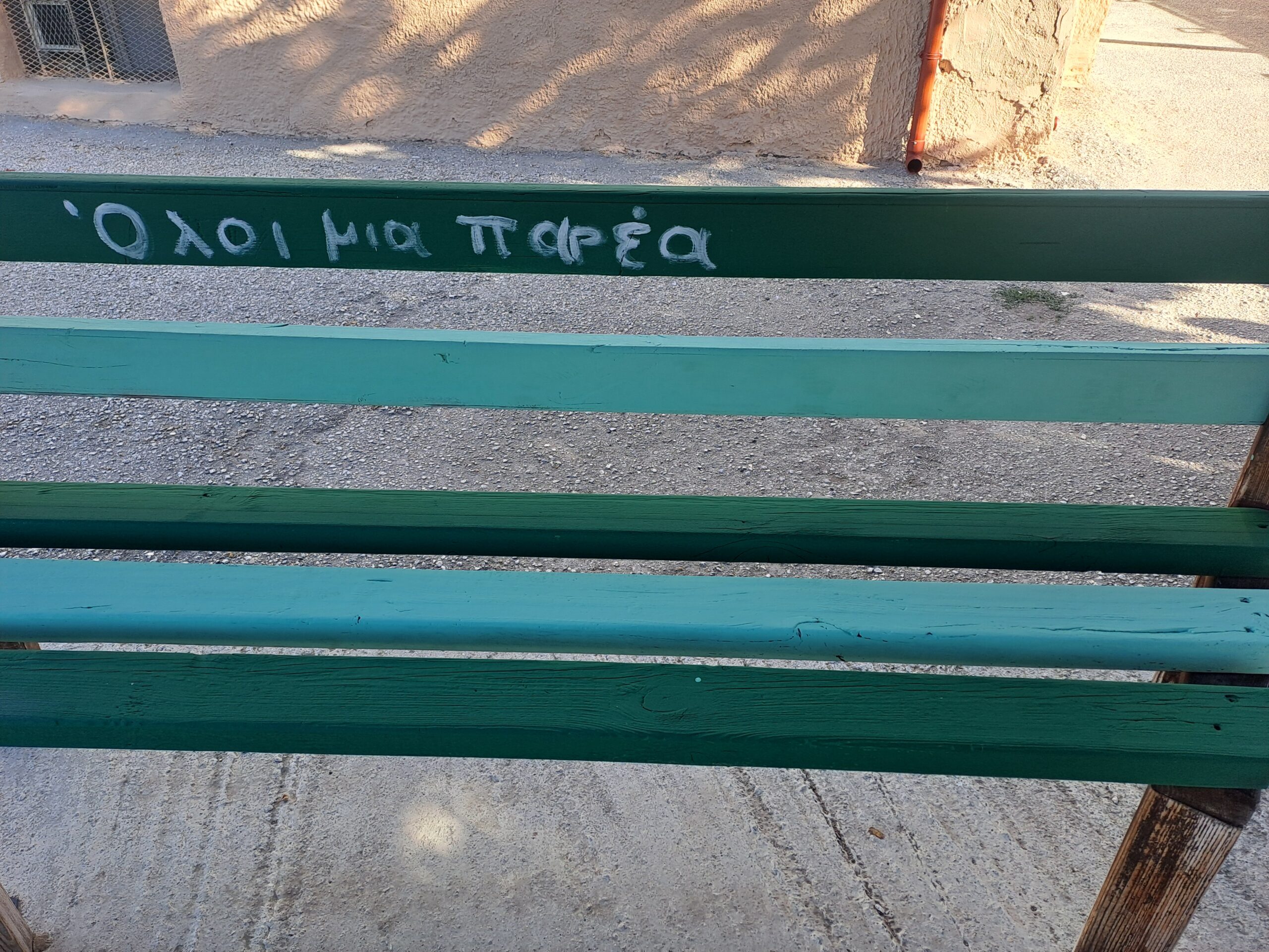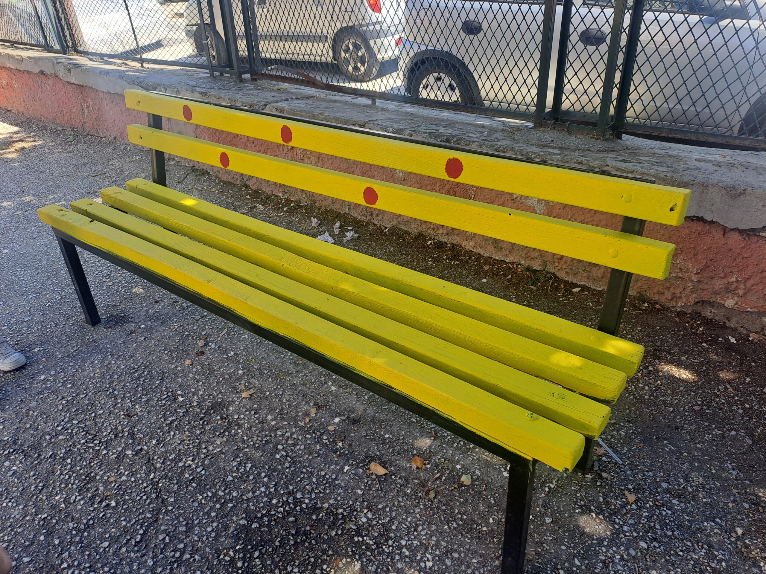 Η εκπαιδευτικός Φυσικής Αγωγής του Σχολείου μας κ. Θρήσκου Δ. αποφάσισε ,με τη βοήθεια μαθητών, να ομορφύνουν συγκεκριμένη γωνιά της σχολικής μας αυλής, περνώντας ταυτόχρονα όμορφα μηνύματα σε μικρούς και μεγάλους. Η εικαστική παρέμβαση , λοιπόν, στην ανατολική είσοδο του Σχολείου φιλοξενεί μια όμορφη «Καλημέρα» , αλλά και το «παγκάκι της φιλίας» ,που είναι μια ιδέα που εφαρμόζεται συχνά σε σχολεία και παιδικές χαρές. Είναι ένα παγκάκι με ξεχωριστή σημασία: