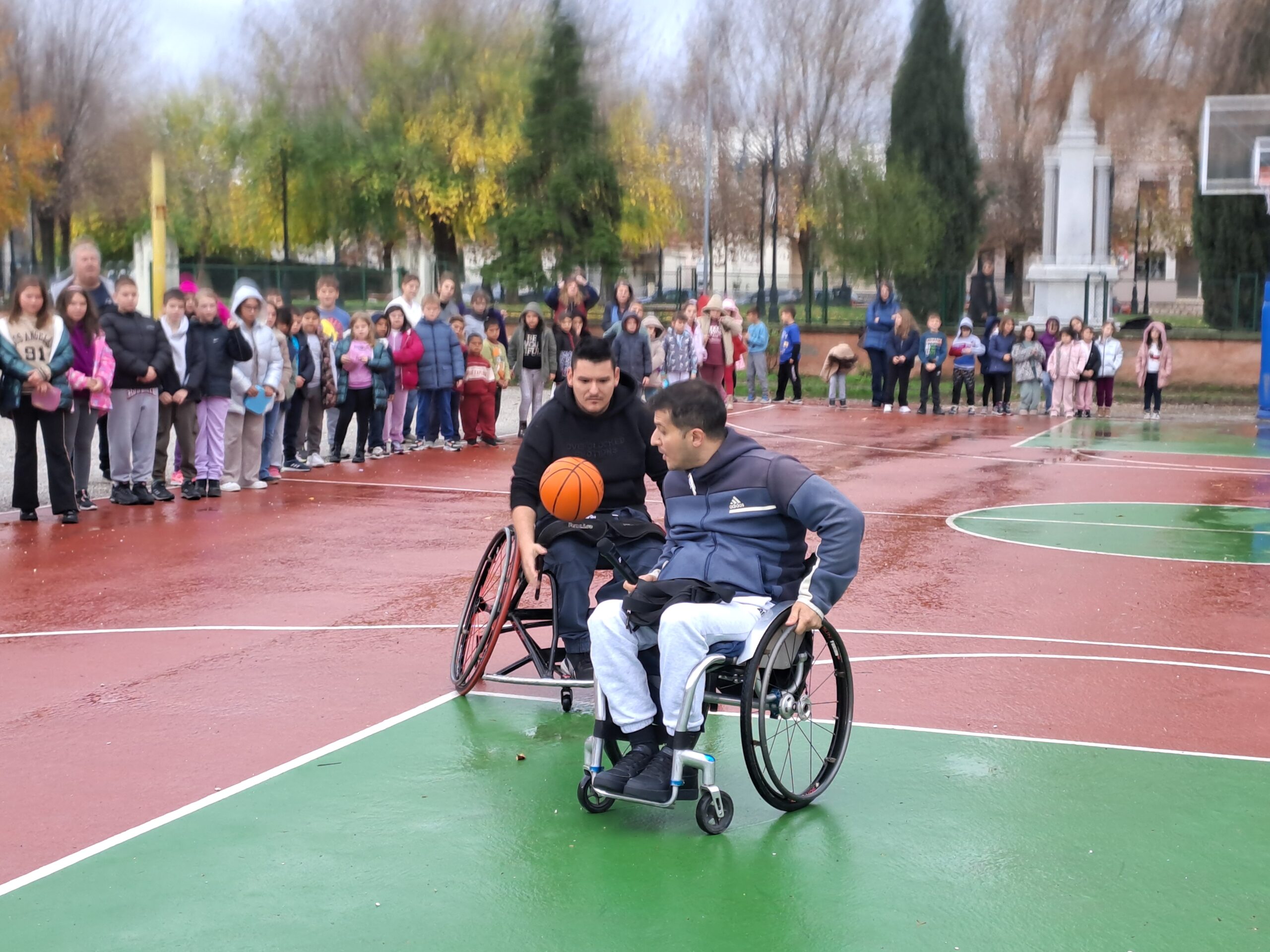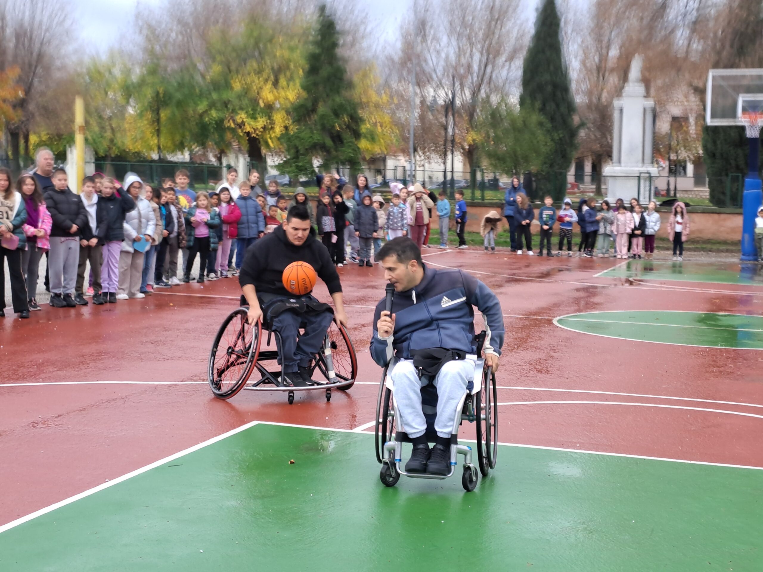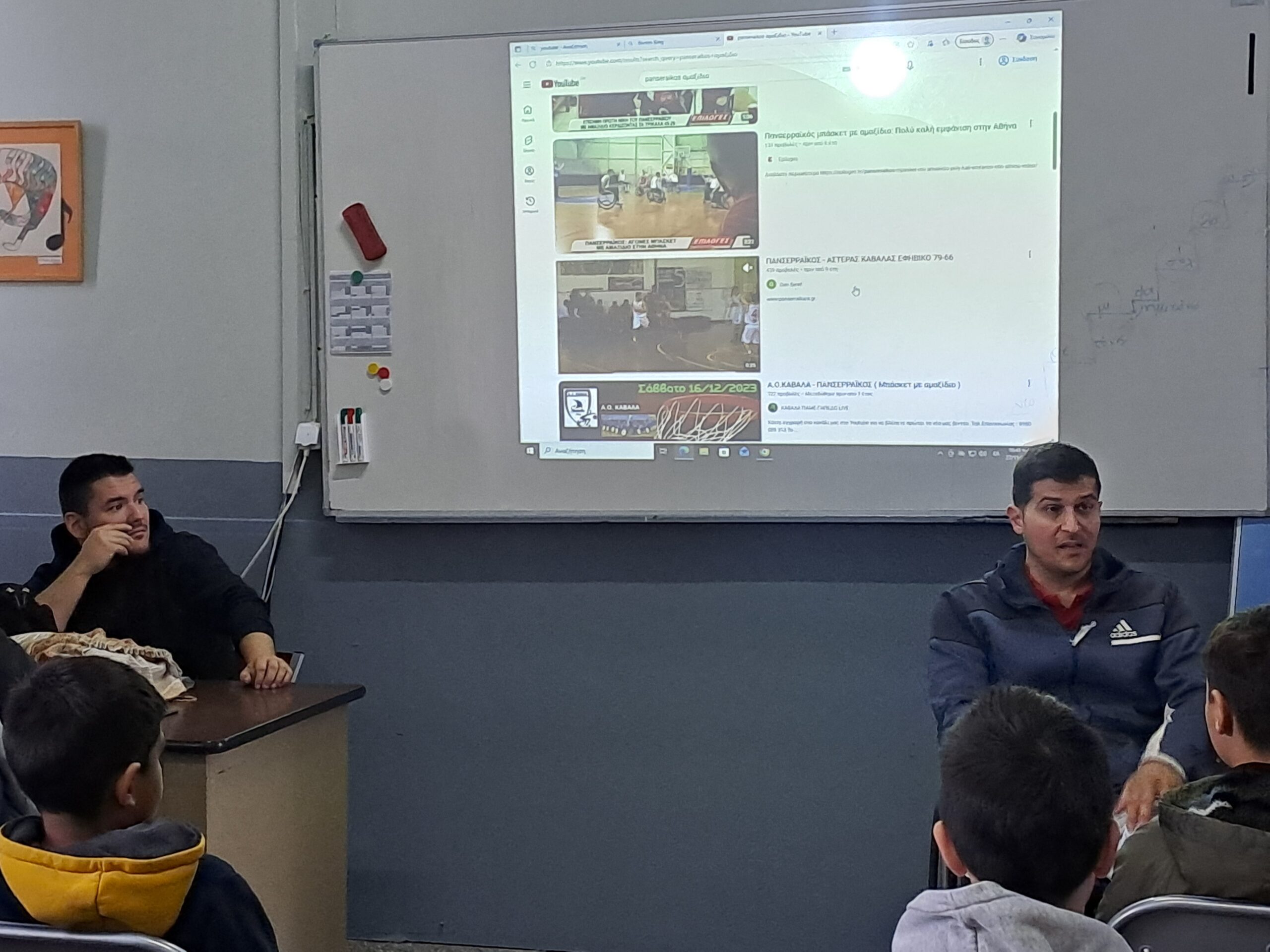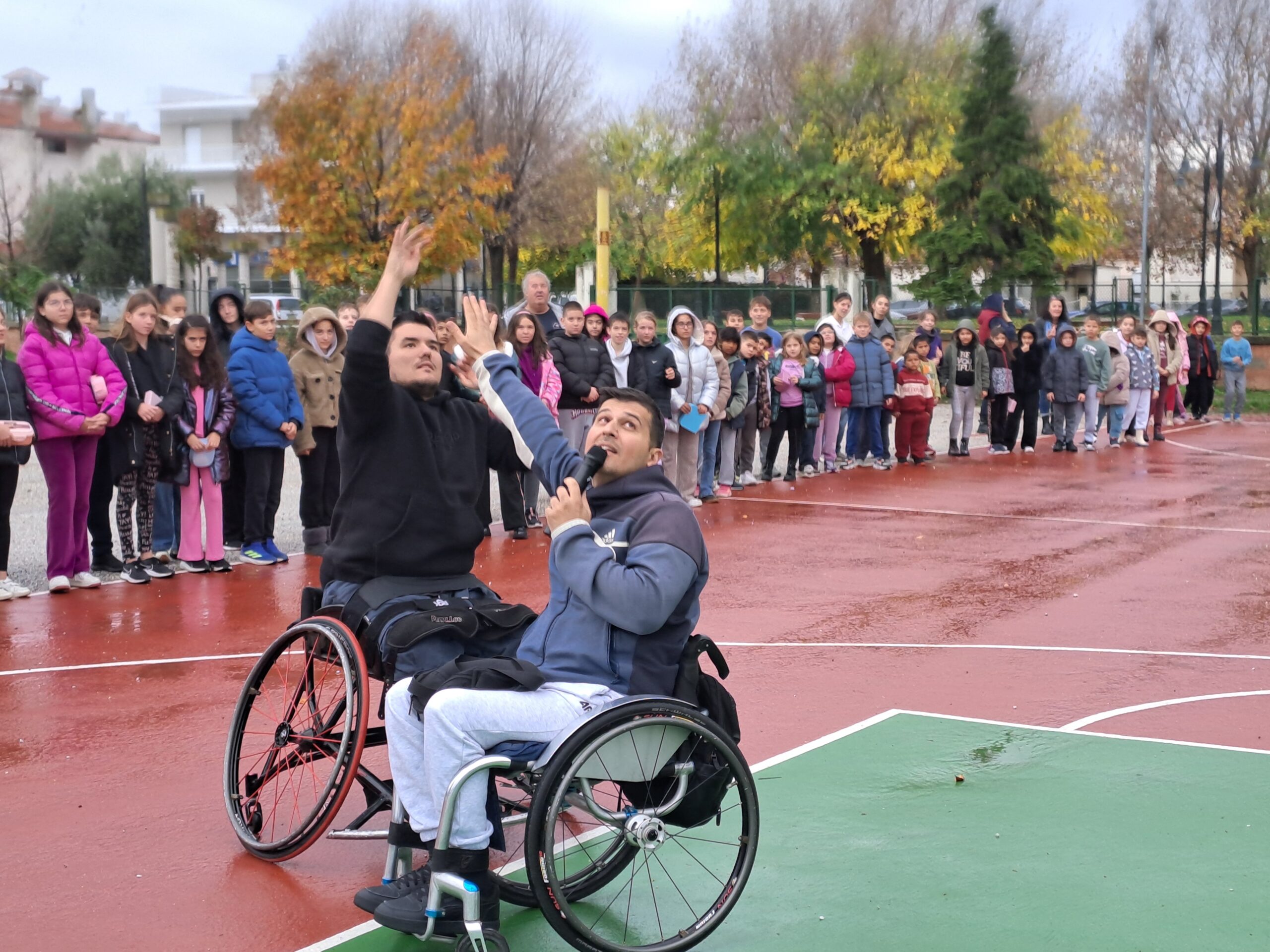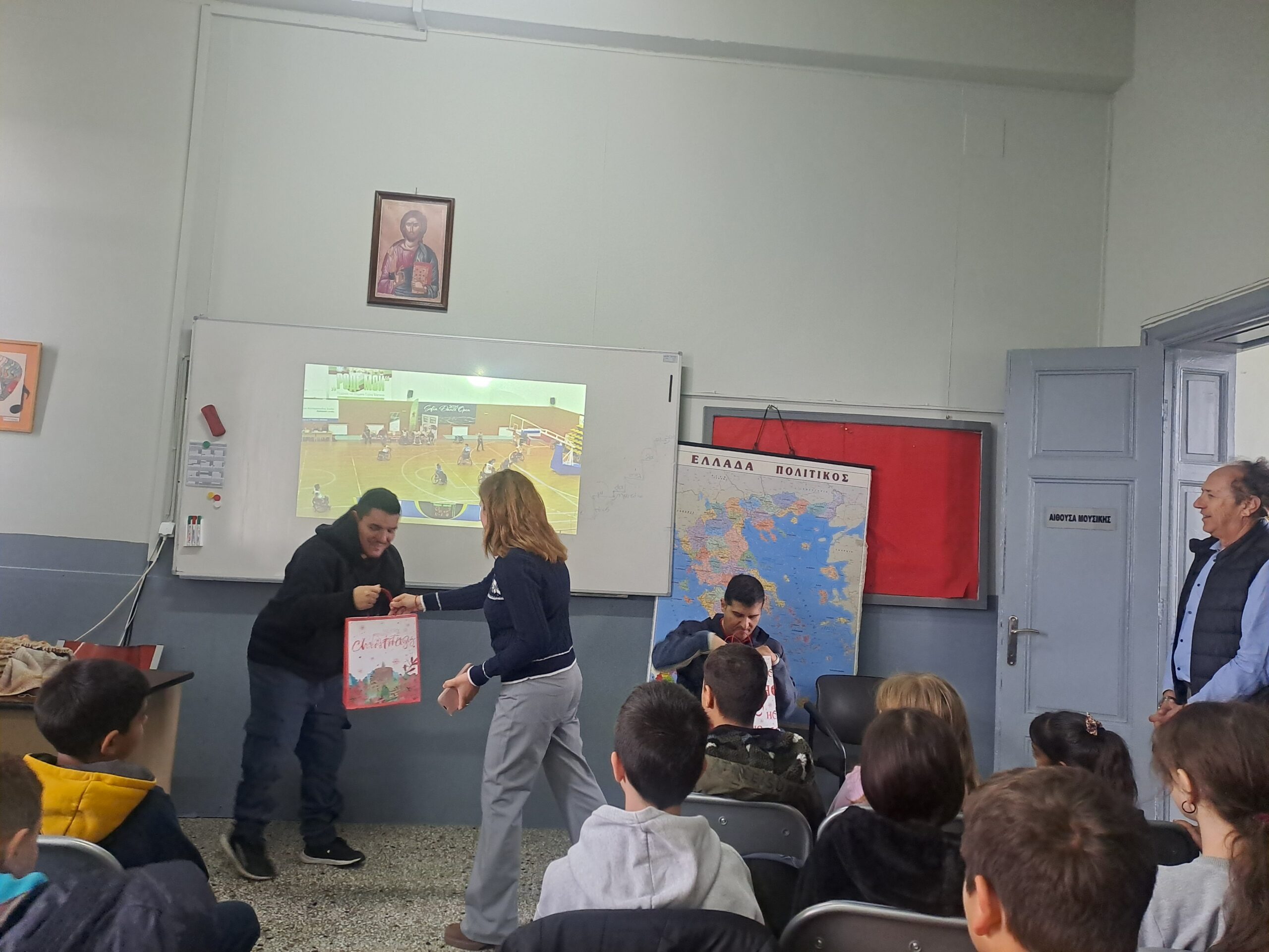 Οι μαθητές μας είχαν την ευκαιρία να κάνουν ερωτήσεις και να λύσουν τυχόν απορίες τους. Αυτό που τους έκανε εντύπωση και τους ενθουσίασε ήταν η επίδειξη καλαθοσφαίρισης με αμαξίδια στο γήπεδο του Σχολείου μας.