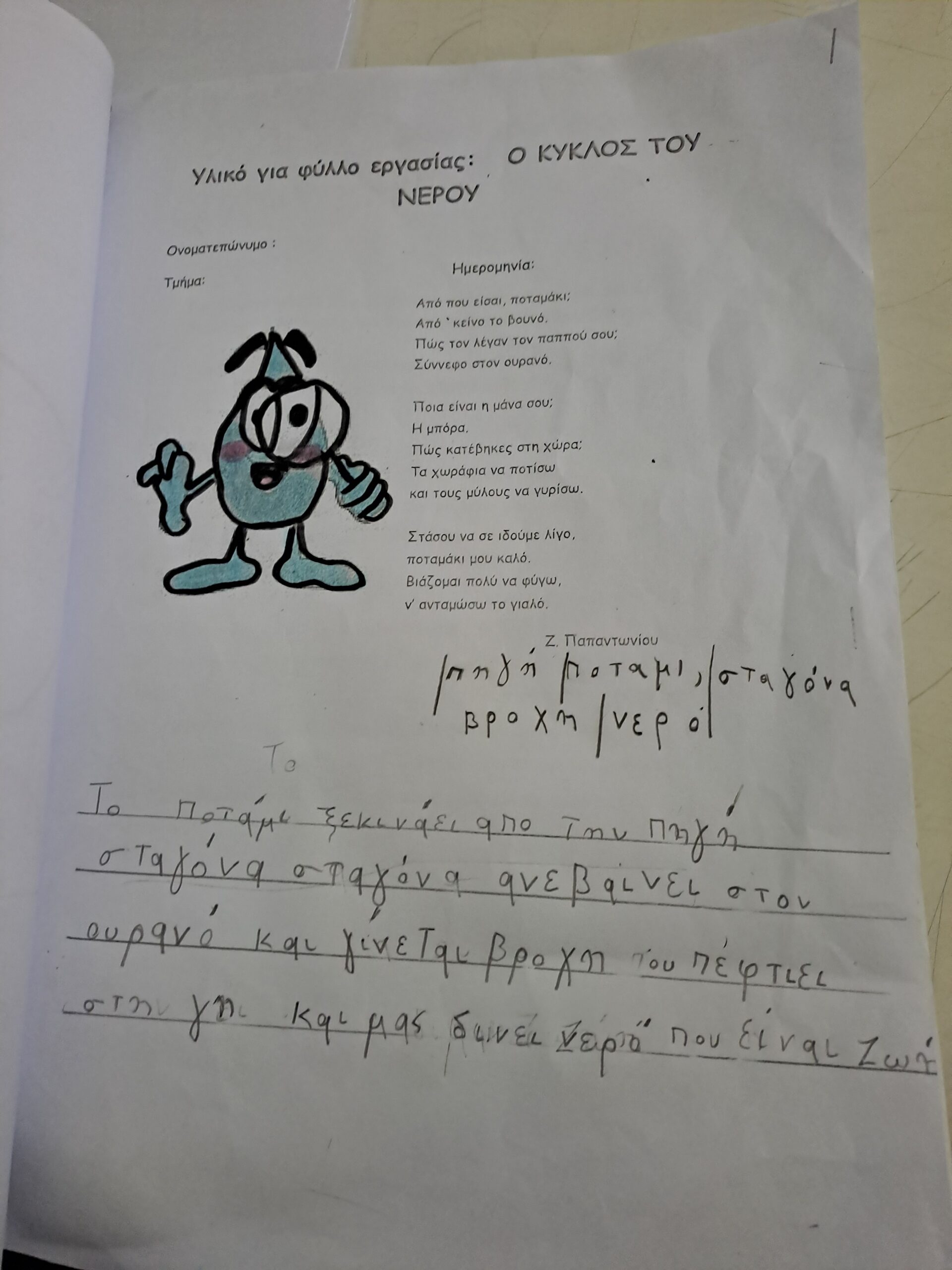 Οι μαθητές μίλησαν για τον κύκλο του νερού, διάβασαν βιβλία για αυτό και έκαναν ομαδικές εργασίες.