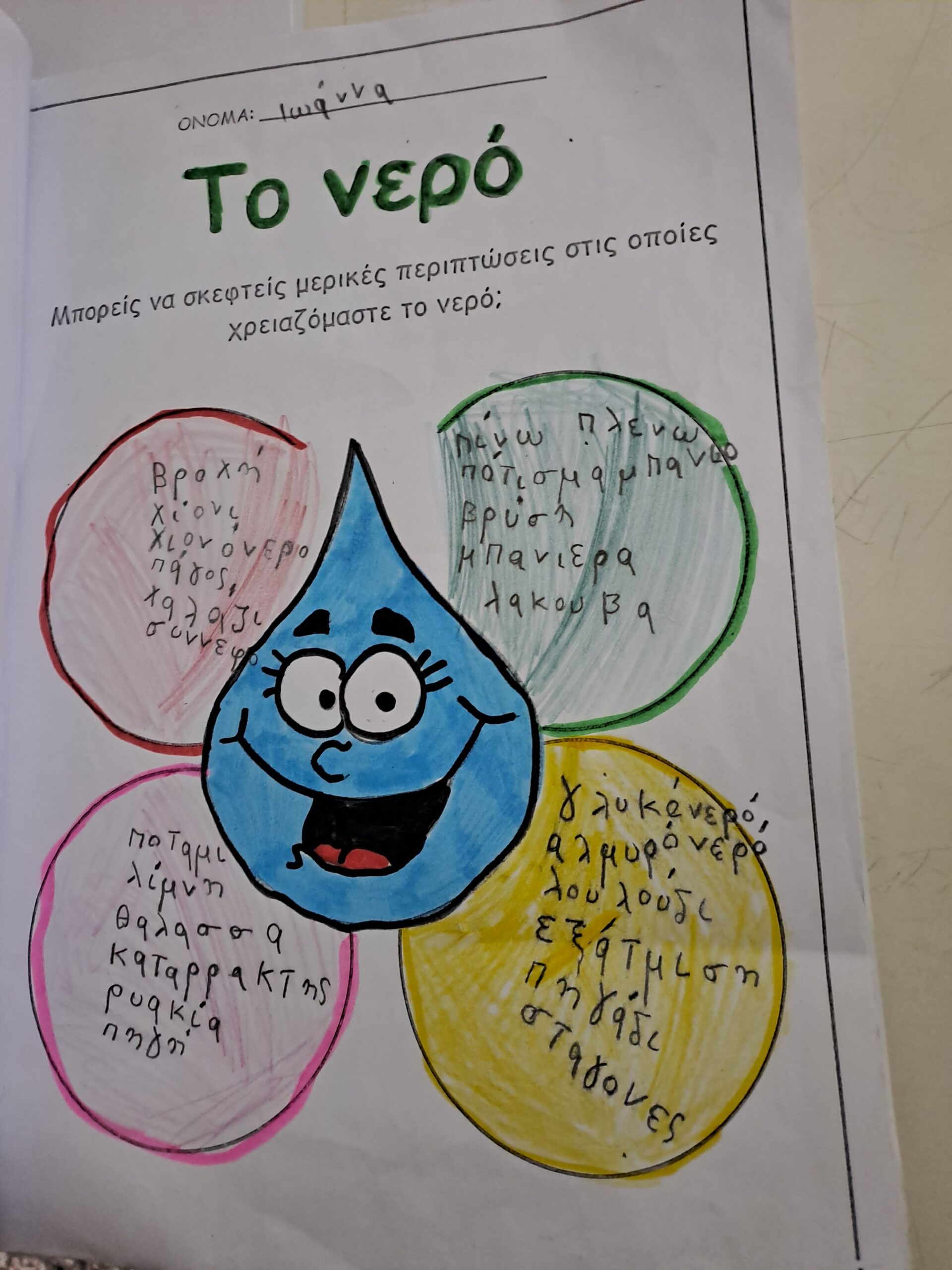 Οι μαθητές της Β τάξης μίλησαν με την εκπαιδευτικό κ. Δάγκου, για την σημασία του νερού στη ζωή μας. Οι δράσεις έγιναν στο πλαίσιο του προγράμματος για τα Οικολογικά Σχολεία , Νερό : Ένα πολύτιμο αγαθό.